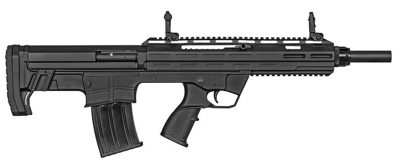 This Semi Auto BULL-PUP 12 Gauge Shotgun features a 18.5 inch Proof Tested 4140 barrel, 5 Round Magazine, Folding BUIS (Back Up Iron Sights) AR-15 Style Safety, and Includes Chokes (Full, Modified, & Improved Cylinder) and Choke wrench (Benelli Pattern).